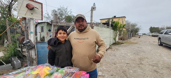 Llegó el frío, viento del norte, a favor de los habitantes de la colonia Vientos de Cambio, quienes recibieron con mucho cariño a Carlos Peña Ortiz, que luego de un saludo, deseos de buena esperanza para el 2025 e intercambio de sonrisas, entregó Roscas de Reyes y cobijas a padres y madres de familia, y juguetes a los niños.